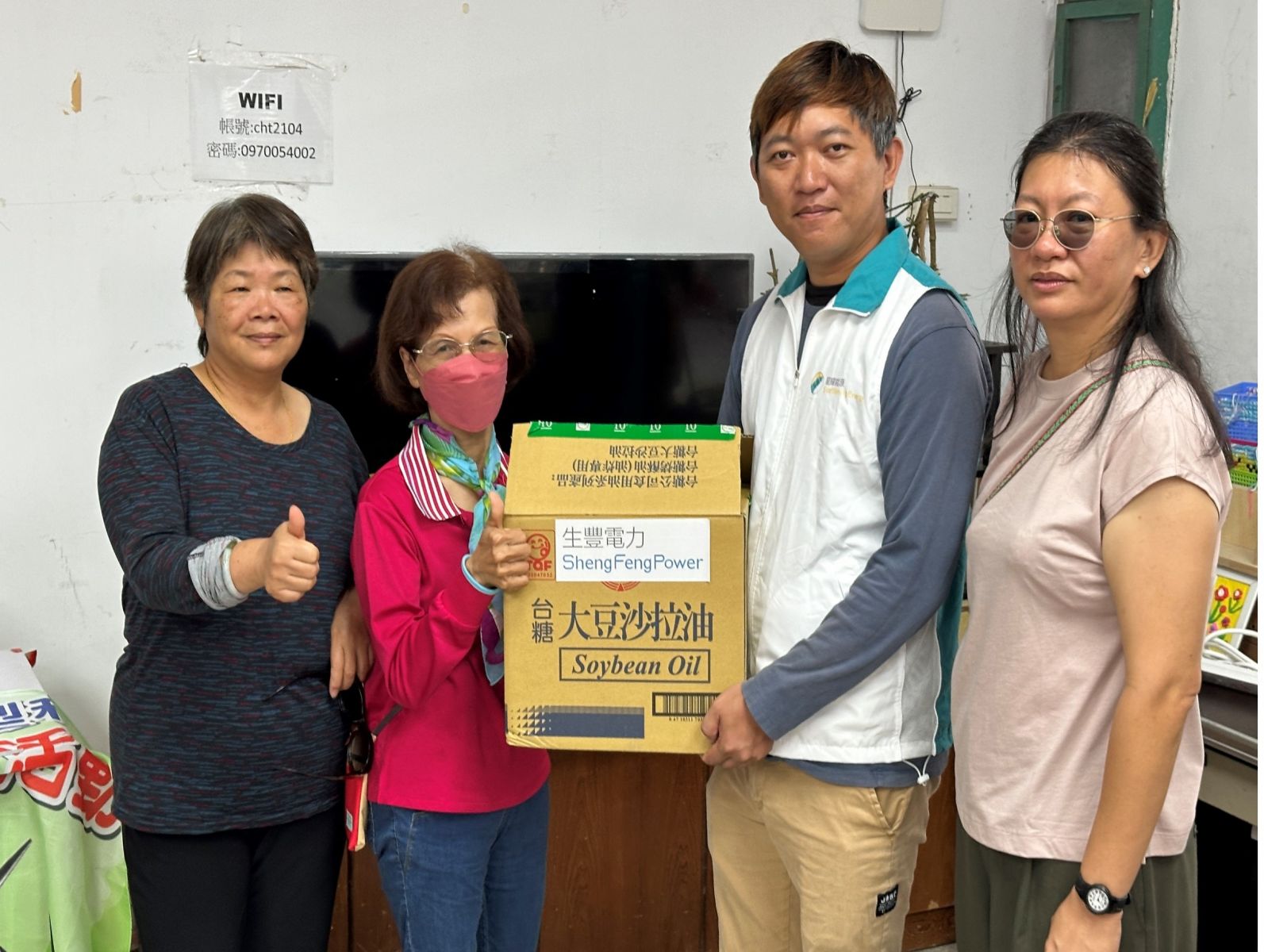 星耀能源代表曾柏仁(右二)致贈日常生活用品,祝福長者身體健康
